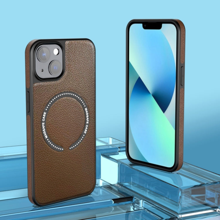 For iPhone 13 Pro Leather MagSafe Magnetic Phone Case (Brown)