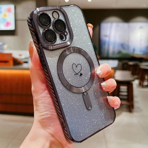 Funda para Teléfono iPhone 13 Pro Loves Gradient Glitter Fibra de Carbono Magsafe TPU (Negro)