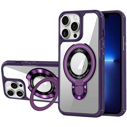 For iPhone 13 Pro MagSafe Hybrid Acrylic TPU Phone Case with Kickstand (Purple)
