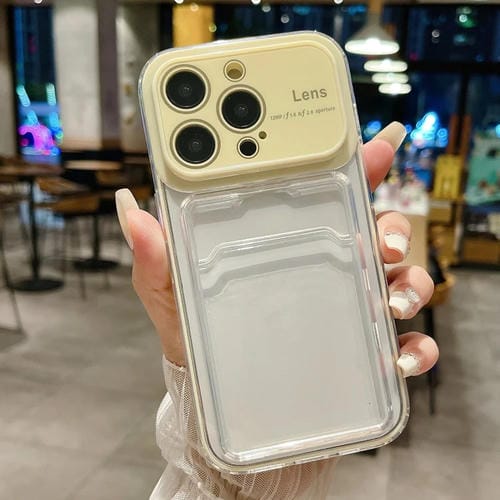 Caja de Teléfono híbrida TPU para PC iPhone 13 Pro Max con Ventana Grande y Ranura para Tarjeta (Amarillo)