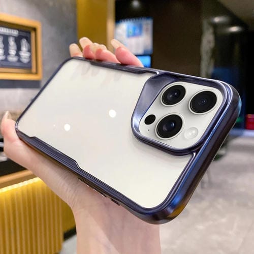 Caja de Teléfono Híbrida para iPhone 13 Pro Max con Marco de TPU Galvanizado (Azul)