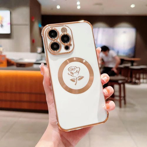 Funda para Teléfono iPhone 13 Pro Max Electroplate Side Roses Flower Magsafe (Blanco)