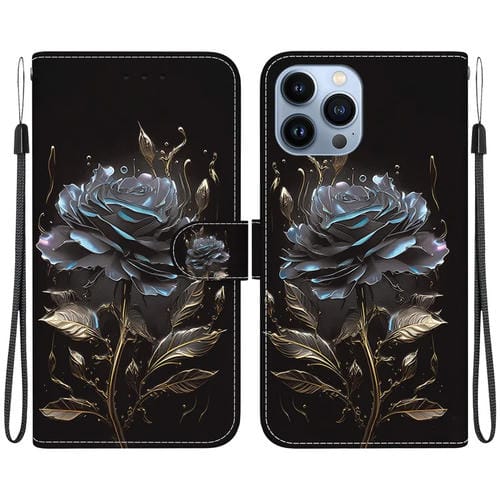 For iPhone 13 Pro Max Crystal Texture Colored Drawing Leather Phone Case (Black Rose)