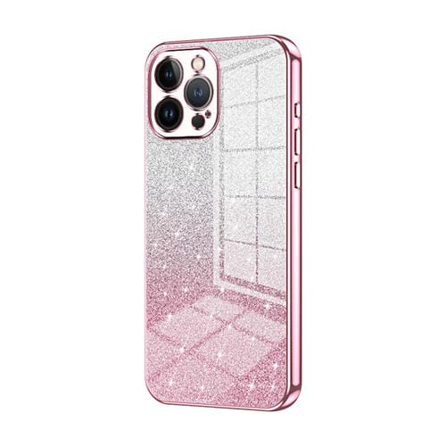 Estuche para Teléfono iPhone 13 Pro Max Galvanizado con Brillo en Polvo Degradado (Rosa)