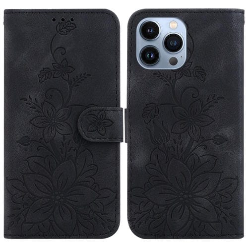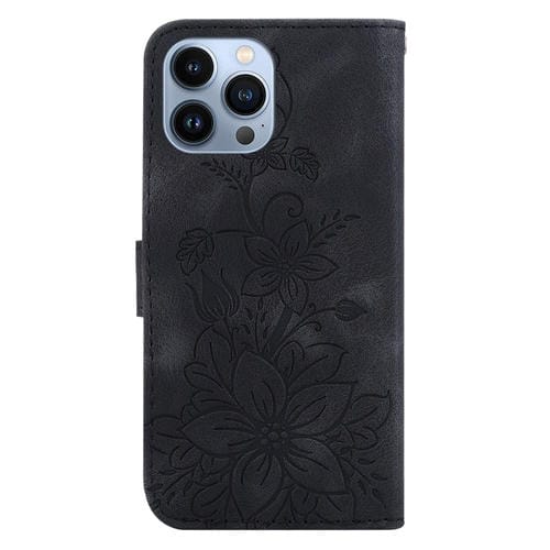 Funda para Teléfono iPhone 13 Pro Max Cuero con Relieve Lily (Negro)