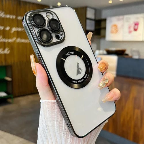 Funda para Teléfono iPhone 13 Pro Max Magsafe PC Galvanizada Transparente (Negro)