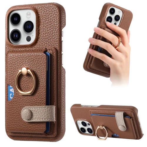 Funda para teléfono iPhone 13 Pro Max Litchi Leather Oil Edge Ring Card Back (Albaricoque Azufaifo)