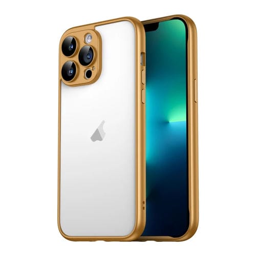 Marco de Borde Puro PC para iPhone 13 Pro Max con Película de Vidrio para Lentes (Dorado)