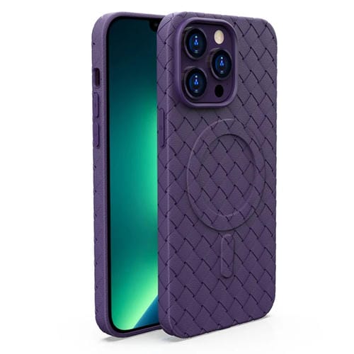 Funda de Teléfono iPhone 13 Pro Max Patrón Tejido Magsafe Refrigeración Magnética (Púrpura)