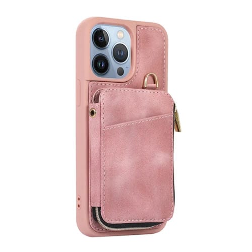 Pour iPhone 13 Pro Max Zipper Card Bag Couverture arrière Étui de téléphone (Rose)
