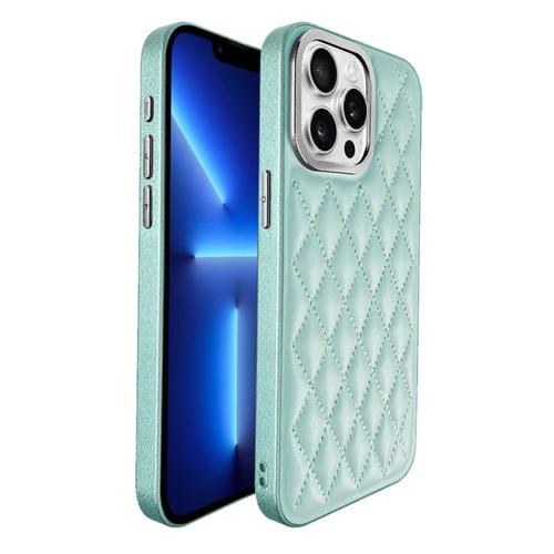 Estuche para teléfono iPhone 13 Pro Plaid Series 9D Galvanizado (Cian-Azul)