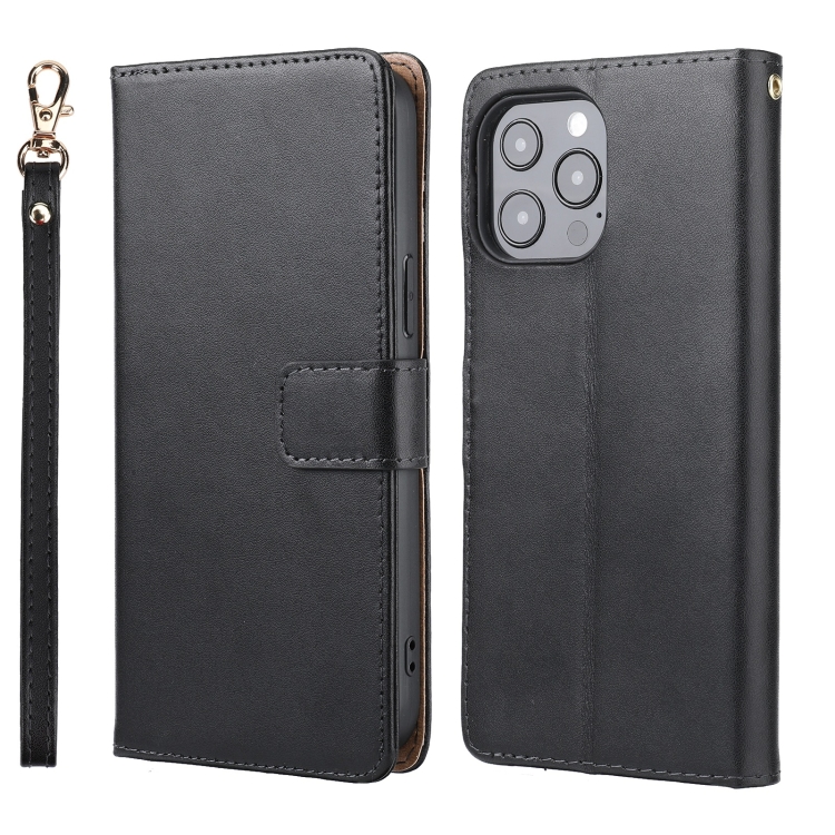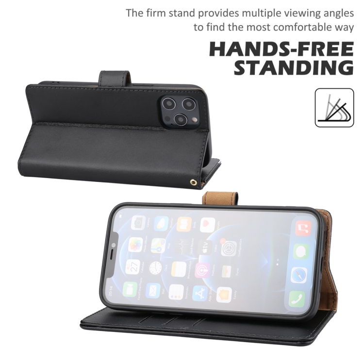Estuche para Teléfono iPhone 13 Pro Plain Weave Cowhide Cuero Genuino (Negro)