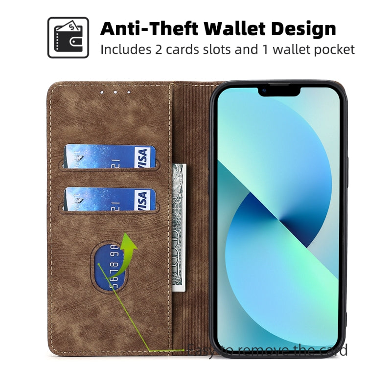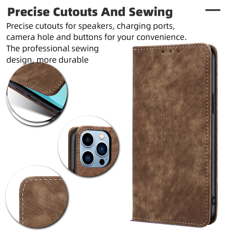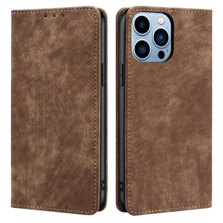 Funda de cuero magnético para iPhone 13 Pro con protección RFID y cepillo antirrobo (Marrón)