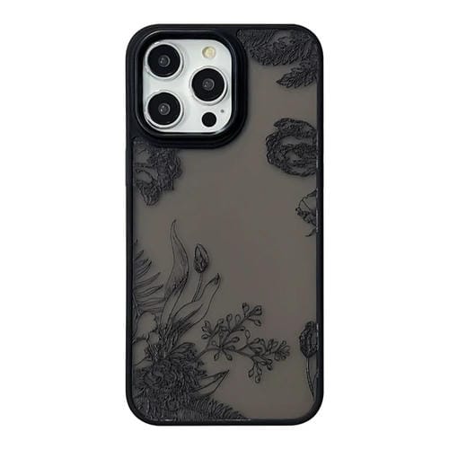 Funda para Teléfono iPhone 13 Pro Skin Feel Matte TPU + PC a Prueba de Golpes (Flor Negra)