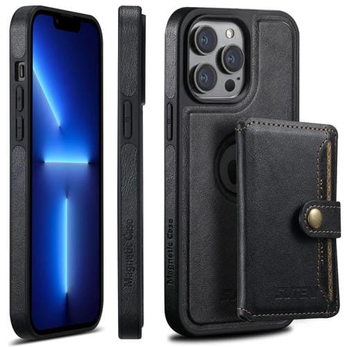 Funda para Teléfono Suteni M1 Oil Wax Magsafe para iPhone 13 Pro con Bolsa para Tarjeta Horizontal Desmontable (Negro)