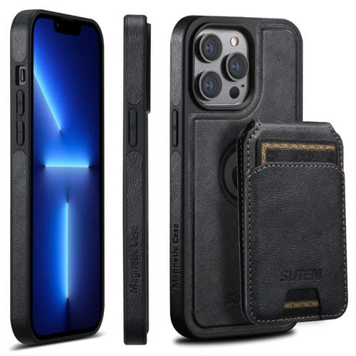 Funda para Teléfono Suteni M2 para iPhone 13 Pro con Magsafe y Bolsa para Tarjeta Horizontal (Negro)