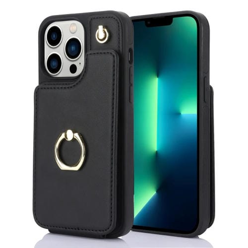 For iPhone 13 Pro YM005 Skin Feel Card Bag Phone Case with Long Lanyard (Black)
