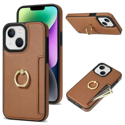 Funda Trasera para iPhone 13 Ring Card Litchi Cuero (Marrón)
