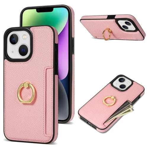 Funda Trasera para iPhone 13 Ring Card Litchi Cuero Rosa