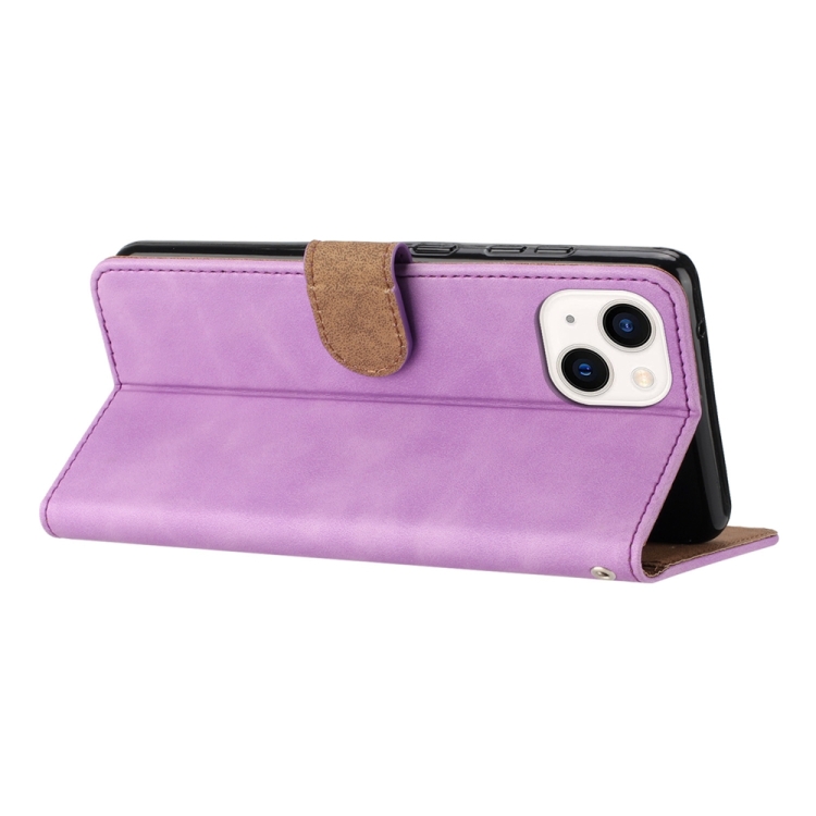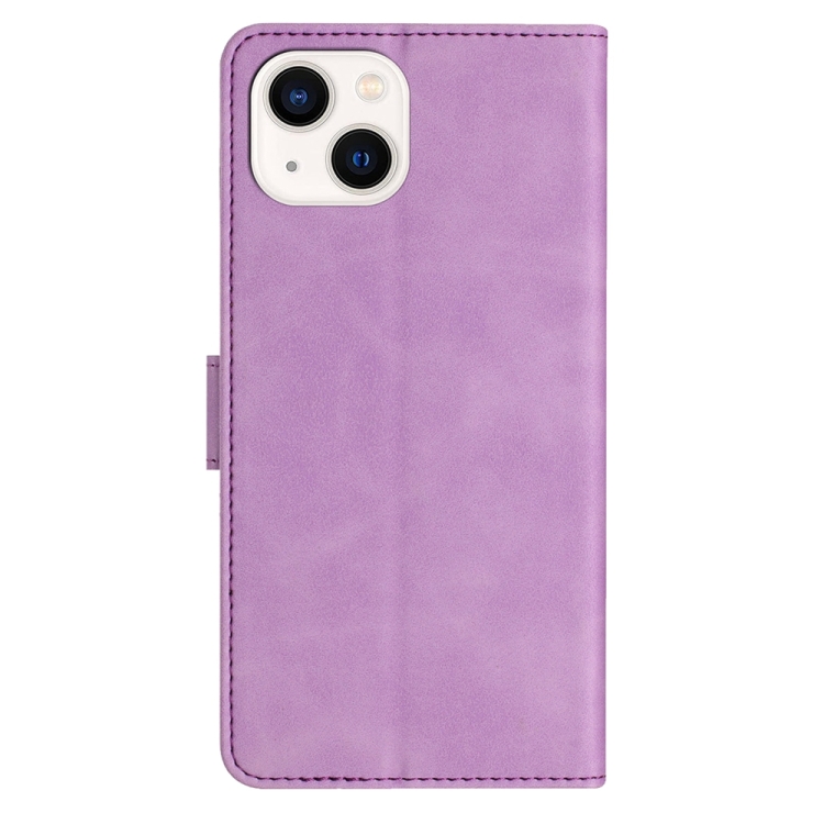 Funda para iPhone 13 Seven Butterflies Caja de Cuero En Relieve (Púrpura)