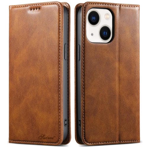 For iPhone 13 Suteni J02 Oil Wax Leather Wallet Phone Case (Brown)