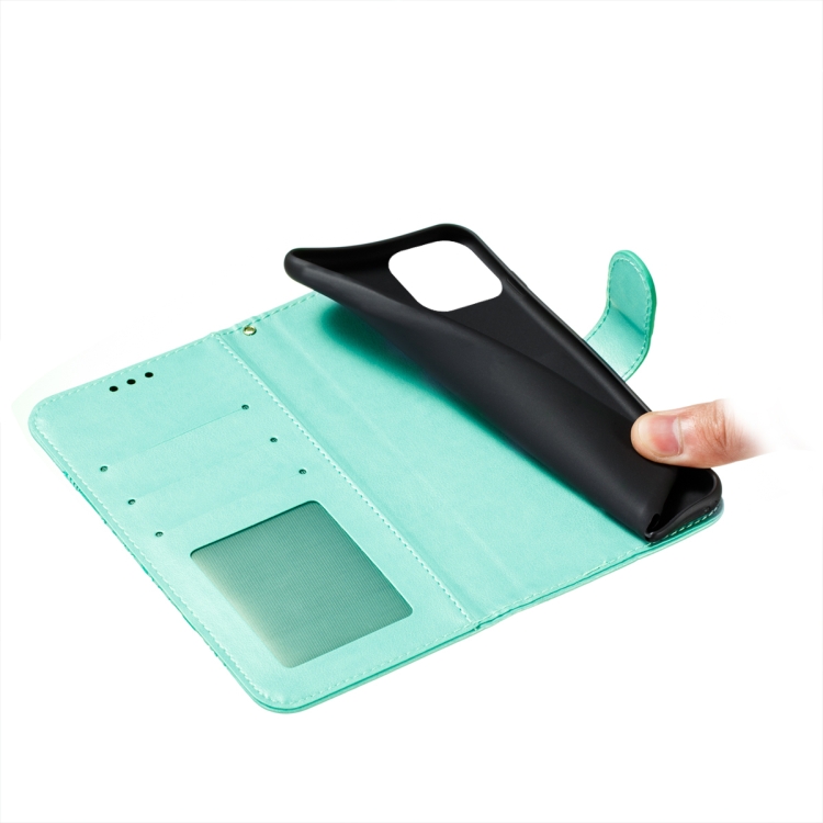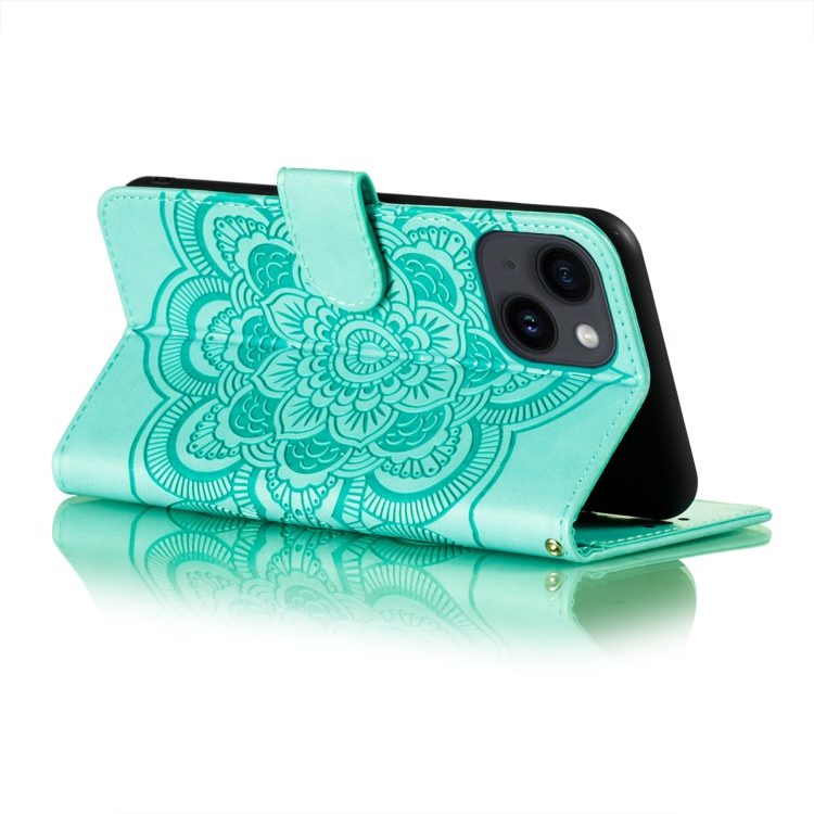 For iPhone 14/13 Sun Mandala Embossed Leather Phone Case (Green)