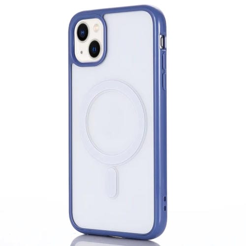 Estuche de teléfono 2 en 1 para iPhone 14 magnético Transparente con marco azul