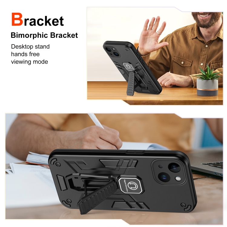 For iPhone 14 2 in 1 Shockproof Phone Case with Kickstand (Black)