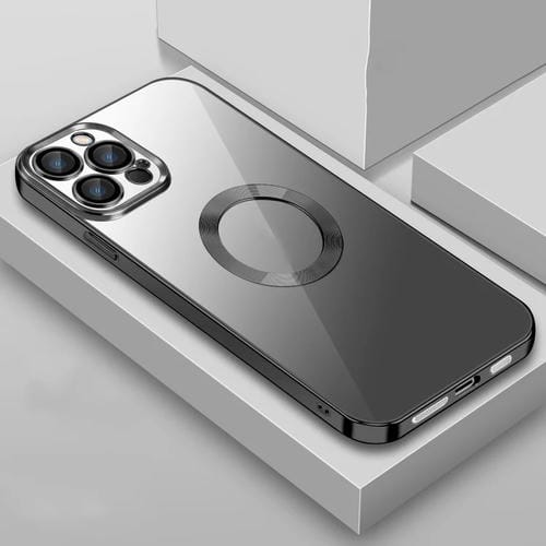 Funda para iPhone 14 9D Plated Lens Film Clear Phone Case (Negro)
