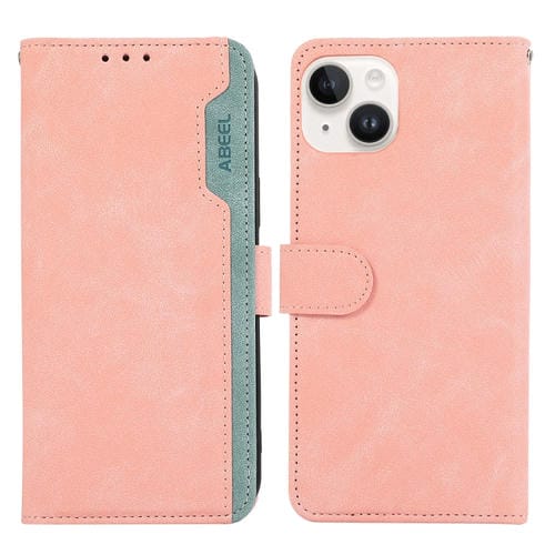 Estuche Magnético de Cuero Abeel para iPhone 14 Color Block con Protección RFID (Rosa-Cian)
