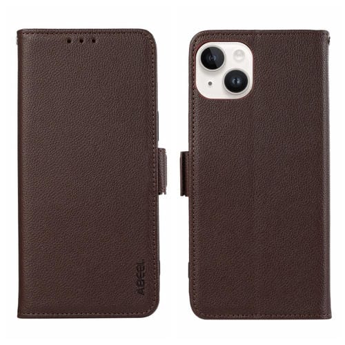 Funda para Teléfono Abeel iPhone 14 Cuero Patrón Litchi Magnético Lateral (Marrón)
