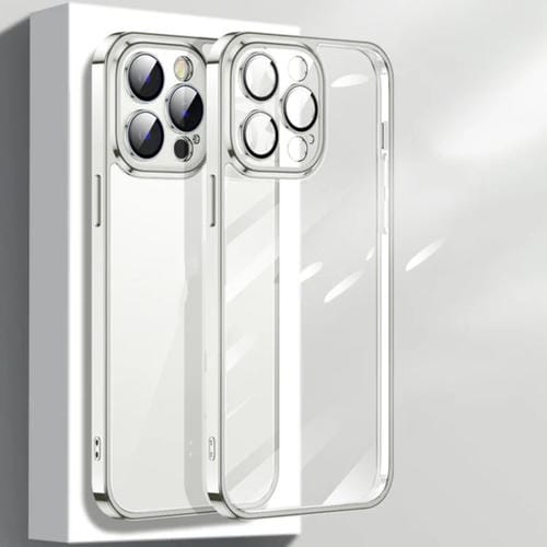 For iPhone 14 Electroplated Glass Phone Case(Silver)