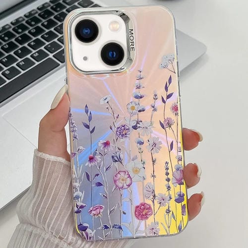 Funda para iPhone 14 TPU con Textura de Flor Láser de Galvanoplastia (Flor Ah1)