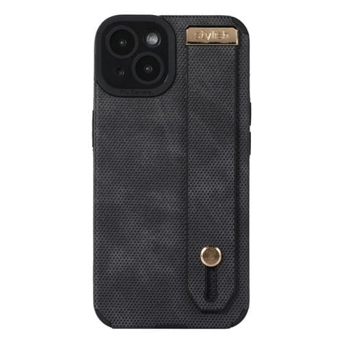 For iPhone 14 Wrist Strap TPU Leather Phone Case (Black)
