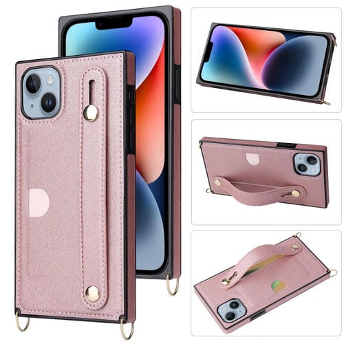 Funda Protectora Crossbody Lanyard para iPhone 14 a Prueba de Golpes (Oro Rosa)