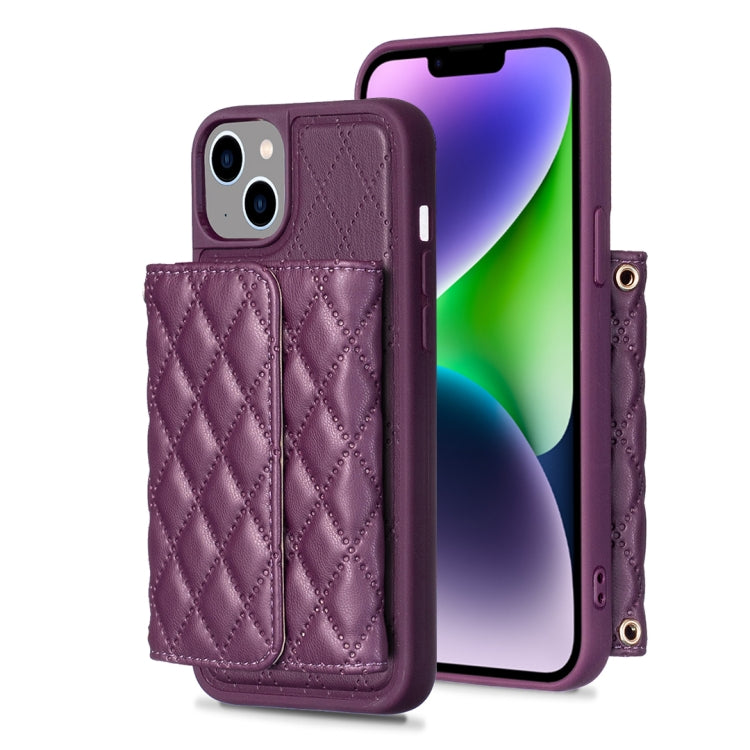 Pour iPhone 14 Étui de téléphone en cuir rhombique à portefeuille horizontal (violet foncé)
