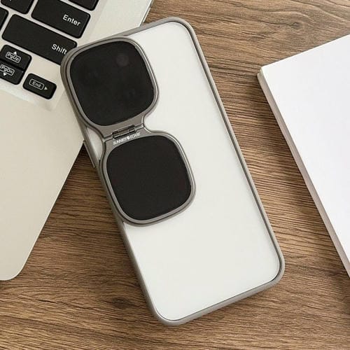 For iPhone 14 Phone Case with Metal Sunglasses Holder TPU+PC (Gray)