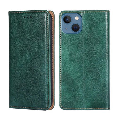 Estuche para Teléfono iPhone 14 Cuero Magnético Color Verde Aceite Brillante