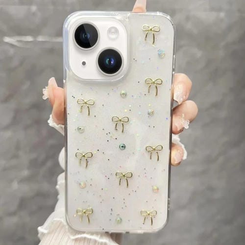 For iPhone 14 Small Fresh Bow TPU Phone Case (Golden Bow)