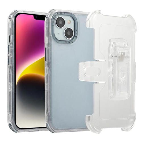 Estuche para Teléfono iPhone 14 Frosted PC + TPU con Clip Trasero (Azul Transparente)