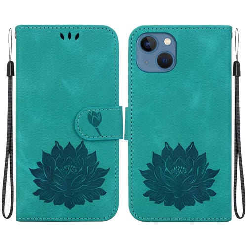 Pour iPhone 14 Étui en cuir gaufré Lotus (Vert)