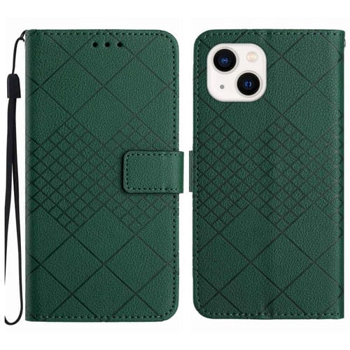 Funda para iPhone 14 Cuero Textura de Rejilla Rómbica (Verde)
