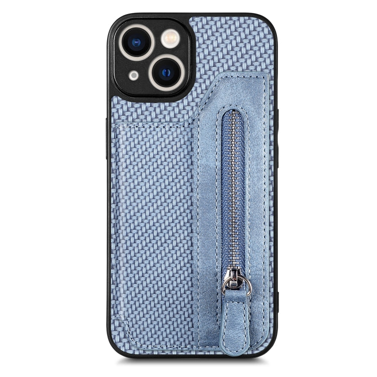 For iPhone 14 Carbon Fiber Horizontal Flip Zipper Phone Case (Blue)