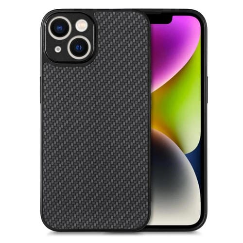 Funda de teléfono iPhone 14 tapa Trasera cuero textura fibra de carbono (Negro)