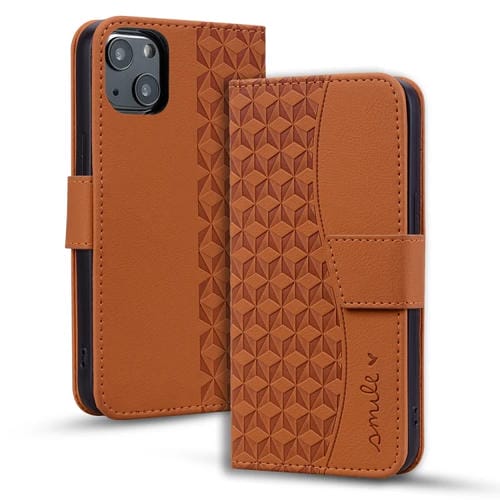 Funda de Teléfono iPhone 14 Cuero Hebilla de Diamante Empresarial Cordón (Marrón)
