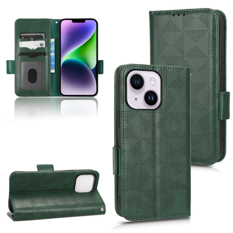 For iPhone 14 Symmetrical Triangle Leather Phone Case (Green)