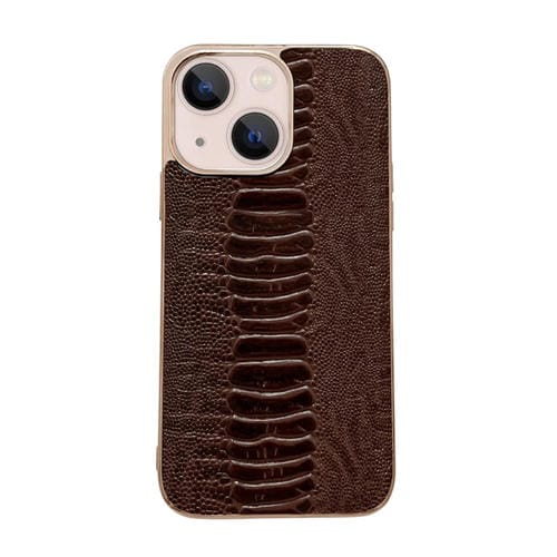 Funda de Teléfono Pinshang iPhone 14 Galvanoplastia Nano Cuero Genuino (Café)