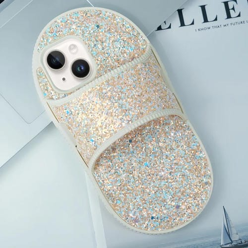 Funda para Teléfono TPU iPhone 14 Diseño Zapatilla Purpurina Creativa (Dorado)