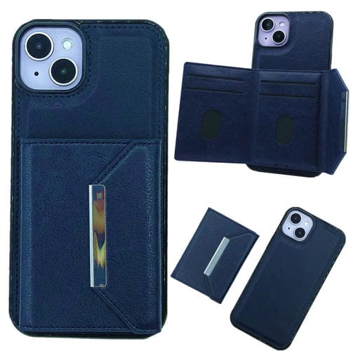 Funda para Teléfono iPhone 14 con Bolsa y Ranuras para Tarjetas con Hebilla de Metal (Azul)