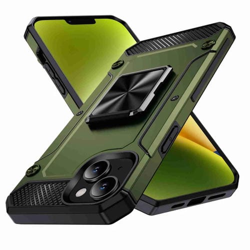 Funda para Teléfono iPhone 14 con Soporte de Metal a Prueba de Golpes (Verde Oliva)